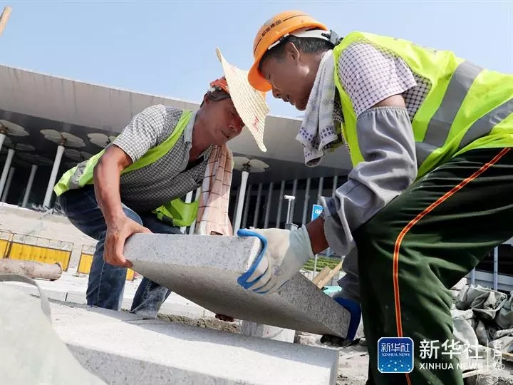 國家會(huì)展中心內(nèi)外的施工人員