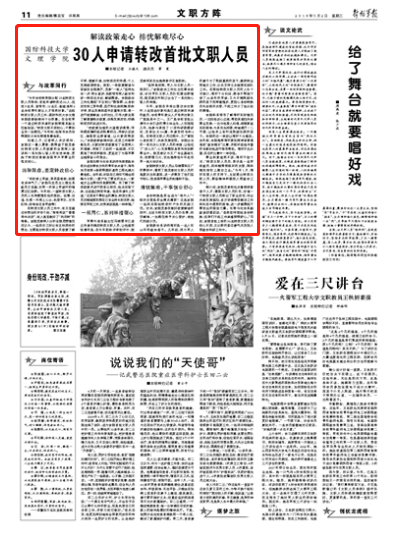 國防科技大學(xué)文理學(xué)院30人申請(qǐng)轉(zhuǎn)改首批文職人員