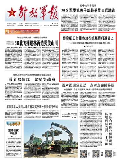 習(xí)主席反復(fù)強(qiáng)調(diào),要牢固樹(shù)立強(qiáng)基固本思想,始終把工作重心放在基層。基層是強(qiáng)軍興軍的根基所在、力量所系,抓基層、打基礎(chǔ)、保穩(wěn)定的工作一刻也不能放松。請(qǐng)關(guān)注今日《解放軍報(bào)》的評(píng)論文章——