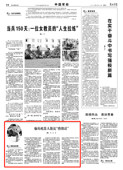 常人眼里,機(jī)器人是一種通過編程、可以自動(dòng)完成一定操作或移動(dòng)作業(yè)的機(jī)械裝置。謝非卻對(duì)機(jī)器人有著別樣的理解。在他看來,機(jī)器人是戰(zhàn)友,可以在賽場(chǎng)上與他并肩作戰(zhàn),可以在實(shí)驗(yàn)室與他一起思考,甚至可以在夜晚和他一起說說悄悄話……請(qǐng)關(guān)注今日《解放軍報(bào)》的報(bào)道——