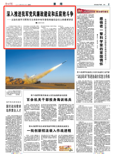 全面加強新時代我軍黨的領(lǐng)導(dǎo)和黨的建設(shè)工作,必須認真學習貫徹習主席在中央軍委黨的建設(shè)會議上的重要講話,以永遠在路上的執(zhí)著和韌勁,堅持嚴字當頭、全面從嚴、一嚴到底,深入推進我軍黨風廉政建設(shè)和反腐敗斗爭。請關(guān)注今日《解放軍報》的報道——