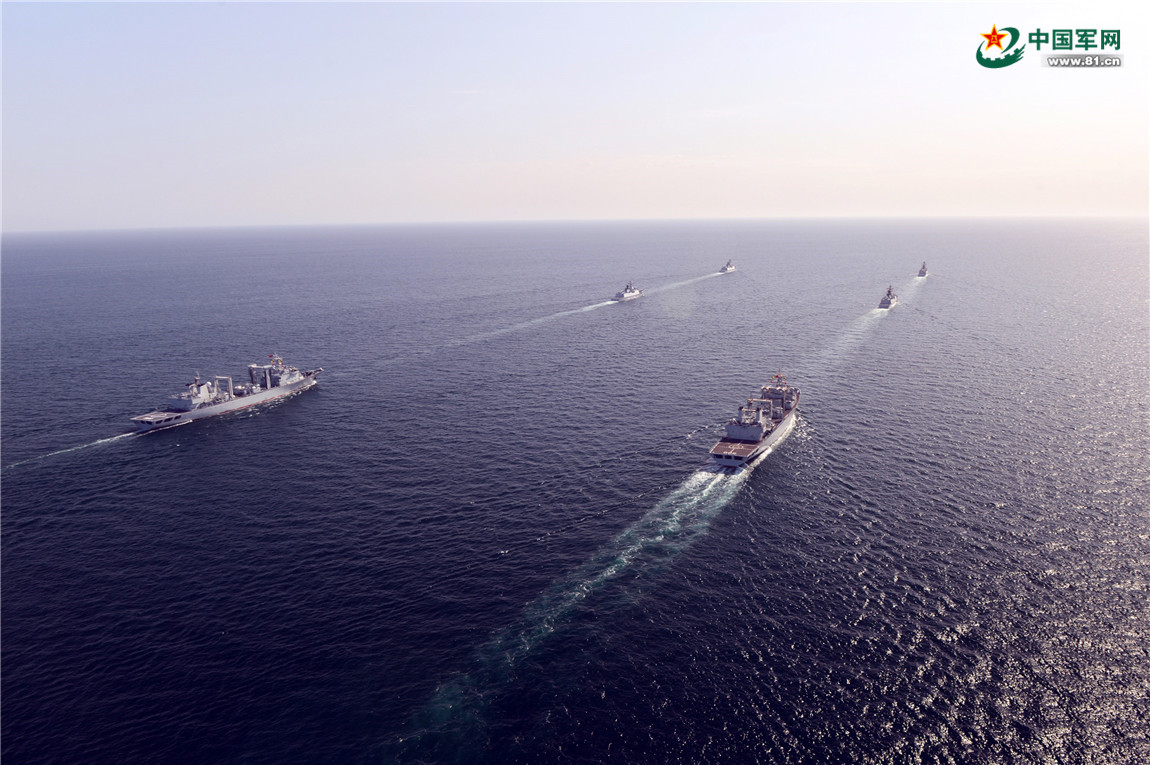 9月4日,海軍第二十九批護(hù)航編隊(duì)、第三十批護(hù)航編隊(duì)在亞丁灣舉行分航儀式,圖為兩批護(hù)航編隊(duì)的6艘艦艇編隊(duì)航行。張海龍 攝