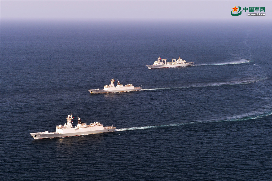 第二十九批護(hù)航編隊(duì)與第三十批護(hù)航編隊(duì)分航后,駛離亞丁灣索馬里海域。張海龍 攝