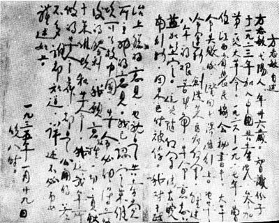 方志敏自述手跡。