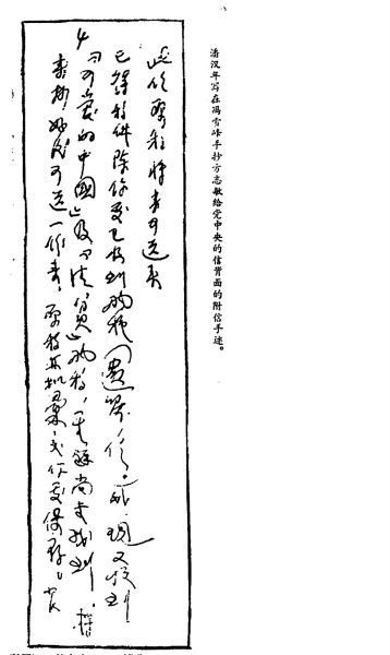 潘漢年(署名“小K”)寫在馮雪峰手抄方志敏《給黨中央的信》背面的《附信》手跡。(局部)