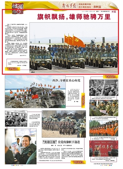 今天,在全面深化改革的偉大實踐中,全軍官兵高舉習近平新時代中國特色社會主義思想偉大旗幟,深入學習貫徹習近平強軍思想,正以昂揚向上的風貌,在中國特色強軍之路上奮力開拓、砥礪前行。請關(guān)注今日《解放軍報》的報道——