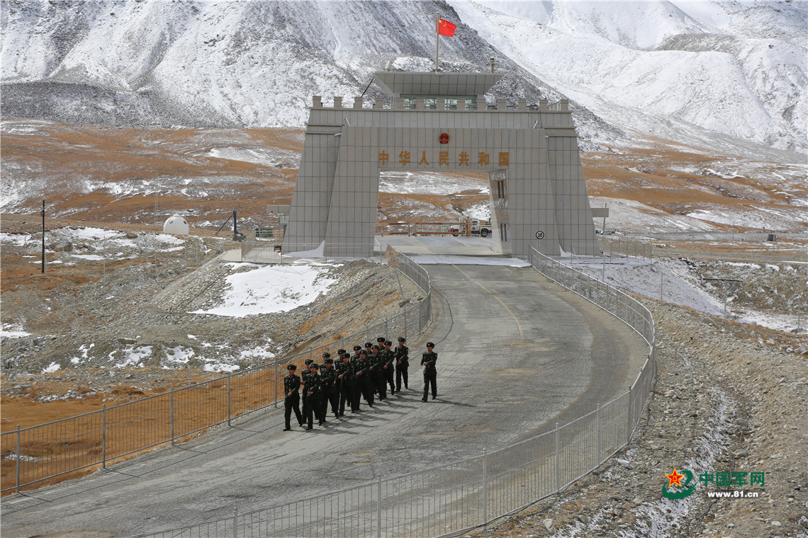 紅其拉甫邊防連官兵在國門執(zhí)勤(2017年10月14日攝)。新華社發(fā)(張慶良 攝)
