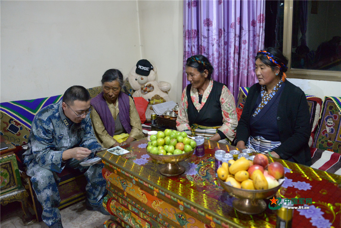 三位藏族老阿媽向記者展示數(shù)十年國門變遷及亞東變化照片(8月1日攝)。劉華 攝