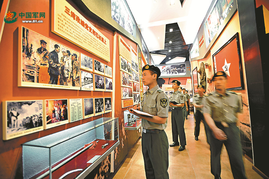 ?官兵經(jīng)常到連隊(duì)榮譽(yù)室學(xué)習(xí)革命傳統(tǒng),汲取精神營(yíng)養(yǎng)。