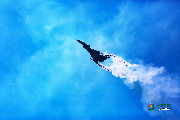 殲-10B戰(zhàn)機(jī)進(jìn)行特技飛行表演。中國軍網(wǎng)記者馮開華 攝