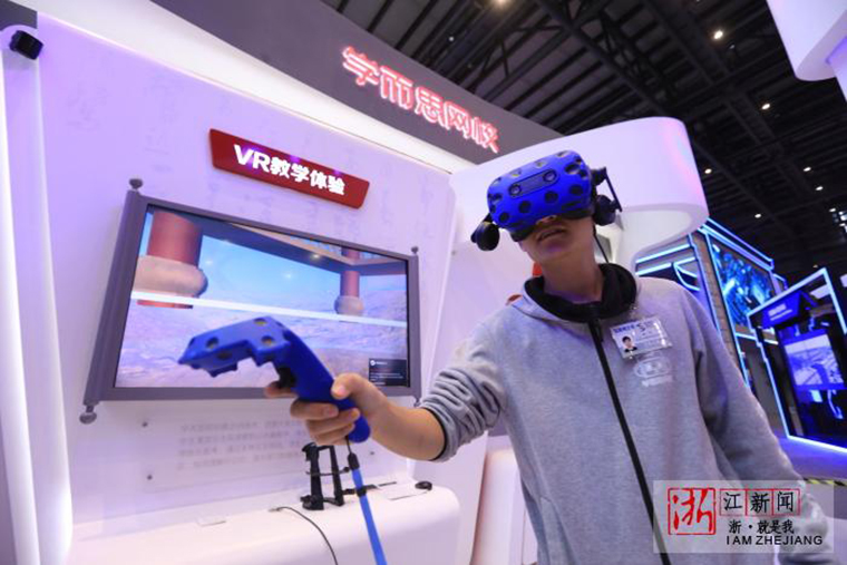 外國嘉賓參觀互聯(lián)網(wǎng)之光博覽會上的黑科技。