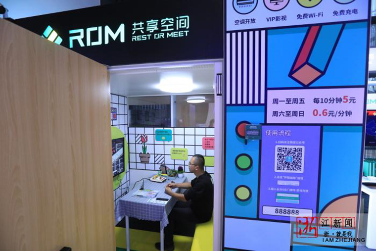 工作人員展示共享空間應(yīng)用場景。