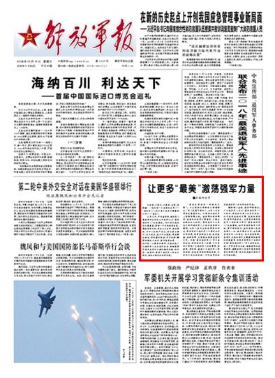 11月10日,中央宣傳部、退役軍人事務部向全社會公開發(fā)布20名“最美退役軍人”先進事跡。他們是一個群體的側影,反映的是廣大退役軍人立足各行各業(yè)、積極投身改革開放時代大潮的精神風貌;他們是一面旗幟,彰顯了退役軍人轉業(yè)不轉志、退伍不褪色的優(yōu)秀品質。請關注今日出版的《解放軍報》的文章——
