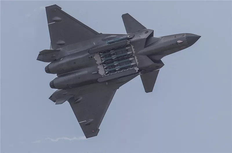 殲-20戰(zhàn)機開啟彈倉,向觀眾展示中國空軍硬實力。劉應(yīng)華 攝
