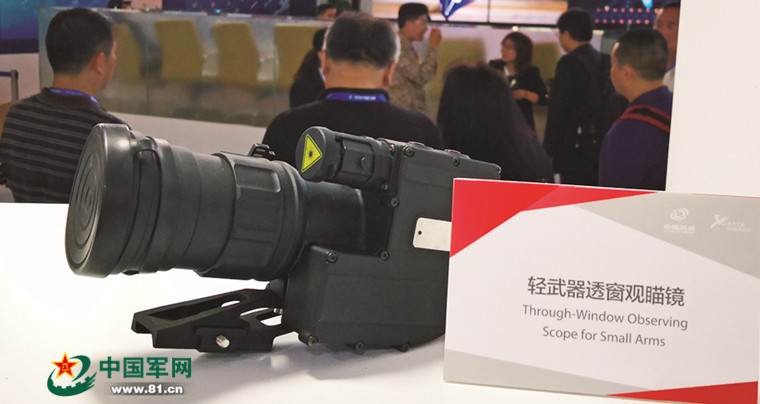 另一款透窗觀瞄鏡,外形與普通狙擊槍用瞄準鏡相差無幾,但可透窗觀察、瞄準。據(jù)介紹,該瞄準鏡采用非可見激光進行主動照明,可對50米內(nèi)的玻璃窗后目標進行觀察瞄準,破解了普通槍械瞄準鏡不能有效透窗探測的難題,在城市反恐作戰(zhàn)中可發(fā)揮有效作用。