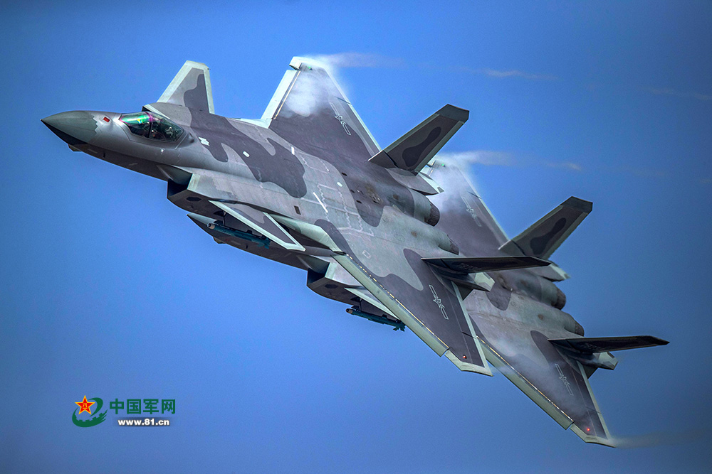 11月11日,殲-20戰(zhàn)機(jī)雙機(jī)編隊(duì)大坡度機(jī)動(dòng),展示超強(qiáng)的機(jī)動(dòng)性能。