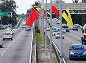 文萊首都斯里巴加灣市道路兩側(cè)掛起中文兩國(guó)國(guó)旗。新華社記者王申攝