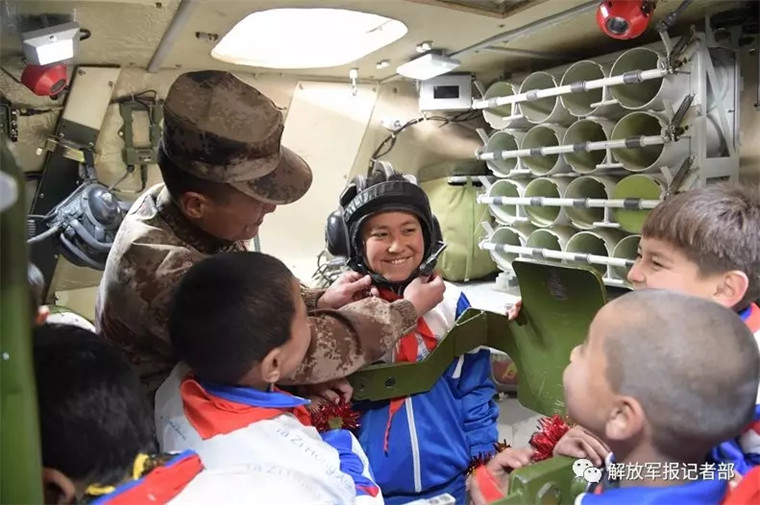 “向國(guó)旗——敬禮!”國(guó)歌奏響,五星紅旗冉冉升起。學(xué)生們舉起小手敬少先隊(duì)禮,他們身后,是官兵們莊嚴(yán)的軍禮。一次“特殊的”升旗儀式給學(xué)生們留下了深刻印象,一顆顆愛(ài)國(guó)愛(ài)軍的火種也正在冉冉升起。來(lái)到裝甲車(chē)庫(kù),眼前數(shù)十輛“龐然大物”再次讓學(xué)生們驚訝不已。在官兵講解后,他們迫不及待爬上戰(zhàn)車(chē),摸摸這,碰碰那,一個(gè)個(gè)成了十足的“小軍迷”。