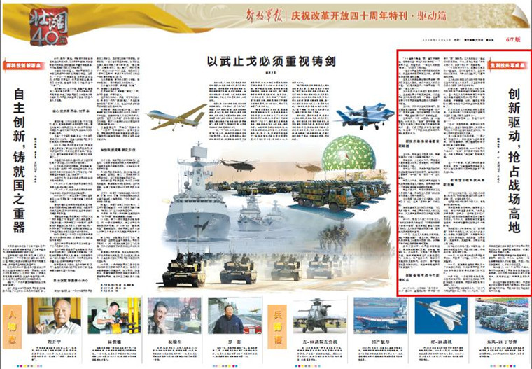 改革開放以來,在科技創(chuàng)新驅(qū)動下,武器裝備跨越式發(fā)展。一個個故事,匯成了鮮活的強(qiáng)軍故事會,成為“不斷提高科技創(chuàng)新對人民軍隊建設(shè)和戰(zhàn)斗力發(fā)展的貢獻(xiàn)率”的生動實踐。請關(guān)注今天出版的《解放軍報》帶來的報道——