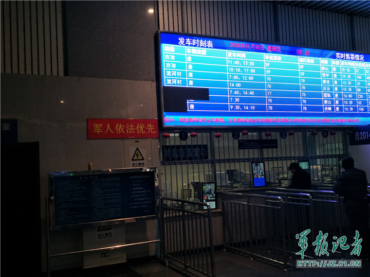 告別六里橋,記者來到北京一級(jí)汽車站、四惠汽車站,這里人來人往,秩序井然。遠(yuǎn)遠(yuǎn)看去,汽車站內(nèi)的售票窗口、軍人候車專區(qū)紅底黃字的“軍人依法優(yōu)先”格外醒目,站長楊彤告訴記者,過去四惠車站一直對(duì)軍人和殘疾軍人都有優(yōu)待,這次上級(jí)正式部署后,我們?cè)鐒?dòng)手、早安排,各項(xiàng)準(zhǔn)備工作到位后,自11月23日提前啟動(dòng)軍人依法優(yōu)先工作,針對(duì)客運(yùn)站候車環(huán)境開放的特點(diǎn),在候車大廳休息區(qū)劃分出軍人候車專區(qū)。