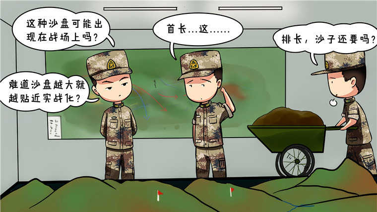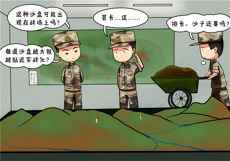 可身旁幾名戰(zhàn)士早已困得睜不開眼。“排長,幾車沙子下來,才剛剛夠沙盤鋪底,戰(zhàn)場上哪有時間拉這么多沙子?”半個晚上都在拉運(yùn)沙子的戰(zhàn)士小王問道。