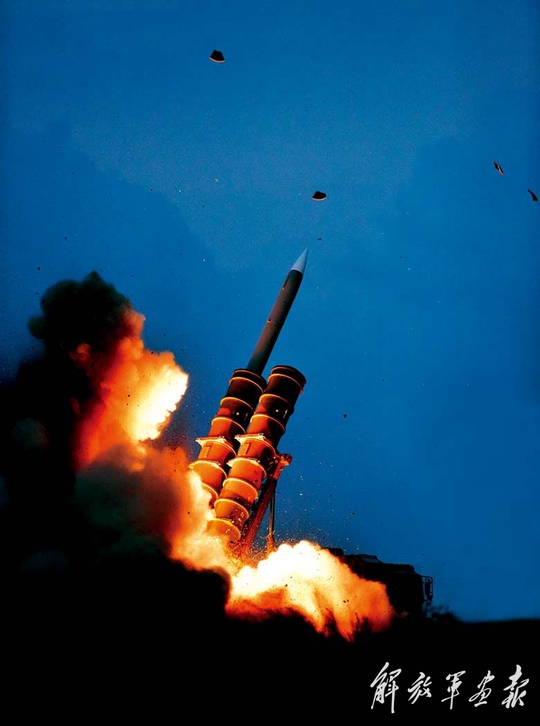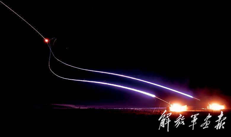 “發(fā)射!”抓住稍縱即逝的戰(zhàn)機,指揮員下達命令。幾枚導(dǎo)彈拖著尾焰照亮夜空,目標(biāo)當(dāng)即空中開花。