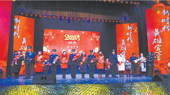 該旅開展“最美軍嫂”評選活動,穩(wěn)固軍人“后院”。圖為獲獎的軍嫂在臺上與家人合影。