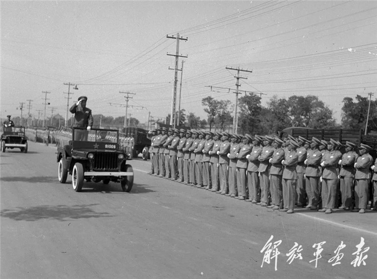 1950年10月1日,朱德在天安門(mén)廣場(chǎng)檢閱部隊(duì)。