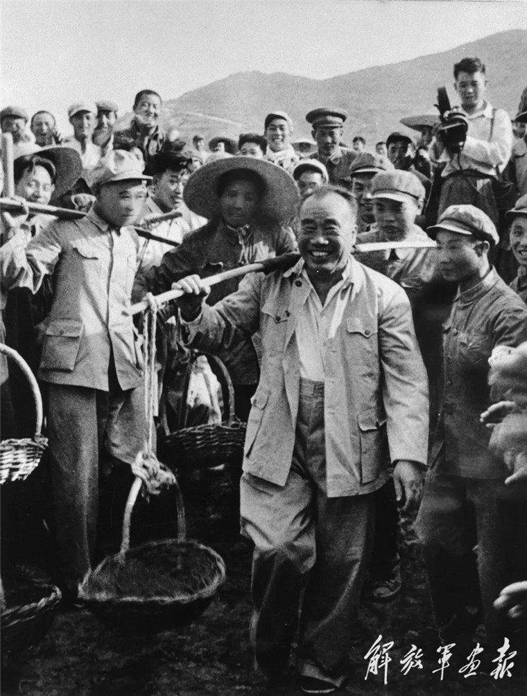 1958年,朱德在十三陵水庫(kù)工地參加勞動(dòng)。