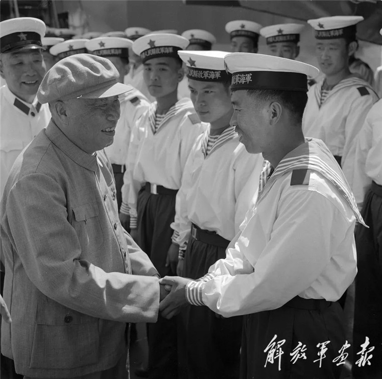 1974年8月,朱德視察海軍時(shí),與海軍戰(zhàn)士親切握手。