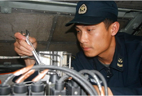 嘴上叼著手鉗,雙眼盯著儀表,閥門在東海艦隊某潛艇支隊專業(yè)技師肖海生手中,如風(fēng)火輪般呼呼直轉(zhuǎn),正值休更時候,艙室戰(zhàn)士誰也沒上前勸他休息,大家都清楚,“手頭裝備問題沒解決,肖技師只怕連覺都睡不著!”