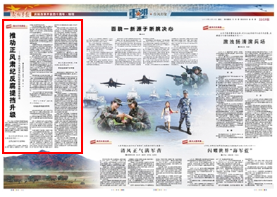 黨的十八大以來,軍隊正風(fēng)肅紀(jì)的鼙鼓激越高昂、步伐鏗鏘堅定、力度前所未有,黨風(fēng)廉政建設(shè)和反腐敗斗爭步步深入,持續(xù)匯聚起強軍興軍的強大正能量。