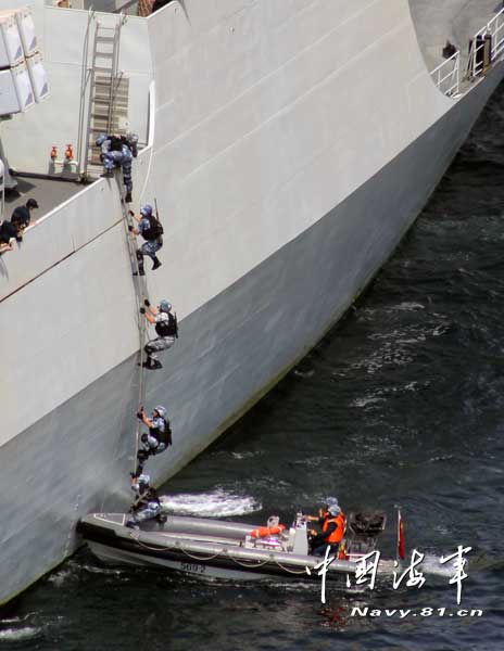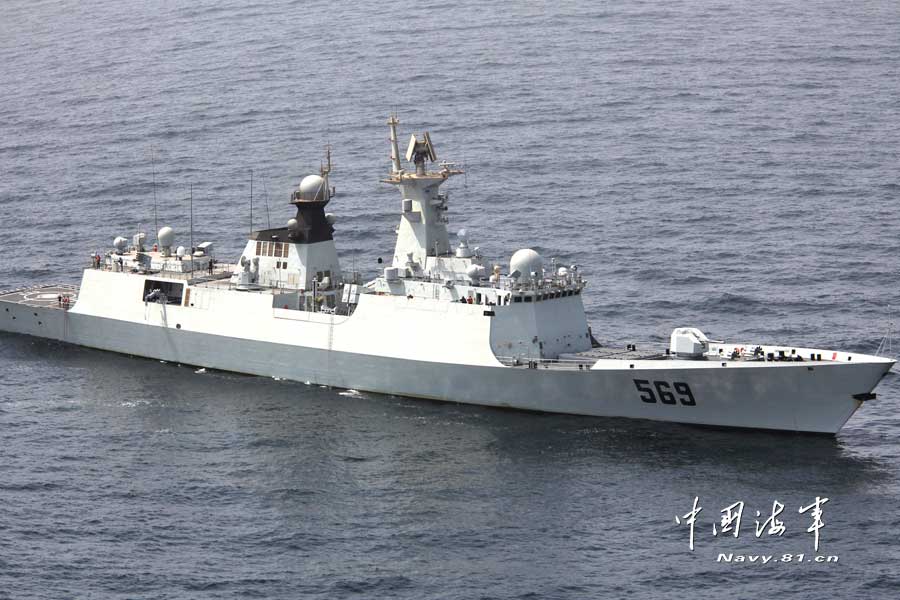 海軍玉林艦,舷號“569”。該艦采用先進(jìn)的武器裝備和艦體的優(yōu)化設(shè)計,具有對海、對空、反潛、對岸火力支援等多方面的作戰(zhàn)功能,從整體上提高了作戰(zhàn)系統(tǒng)的綜合作戰(zhàn)效能,是海軍當(dāng)前現(xiàn)代化水平較高的戰(zhàn)斗艦艇。艦長130多米,最大寬度16米,滿載排水量4000余噸。主要擔(dān)負(fù)編隊的反潛任務(wù)、驅(qū)護(hù)艦編隊指揮、單獨或協(xié)同編隊攻擊敵大、中型水面艦艇,協(xié)同編隊防空并為登陸作戰(zhàn)提供火力支援、執(zhí)行海上巡邏、警戒、護(hù)航等任務(wù)。2011年7月,與南海艦隊“武漢”艦、“青海湖”艦組成第九批護(hù)航編隊,赴亞丁灣、索馬里海域執(zhí)行護(hù)航任務(wù)。