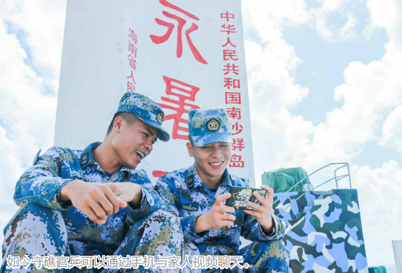 從書信到衛(wèi)星電話,從手機(jī)通話到視頻聊天,南沙島礁通信方式的發(fā)展歷程,就是南沙島礁發(fā)展建設(shè)的一個縮影。在永暑礁守備部隊通信站站長劉輝看來,通信方式變遷的背后,和祖國的強(qiáng)大息息相關(guān)。他說 :“正因為有日益強(qiáng)大的祖國做后盾,我們駐礁部隊才有了翻天覆地的變化。這凝聚了一代又一代南沙人的不懈奮斗,更彰顯了改革開放以來祖國一步步邁向偉大復(fù)興的巨大成就!”(文圖/周啟青 楊 捷)