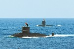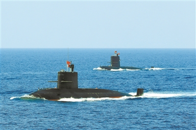 潛艇破浪前行。
