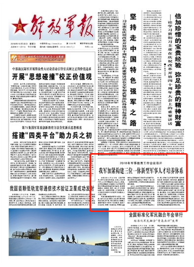 我軍加緊構(gòu)建三位一體新型軍事人才培養(yǎng)體系