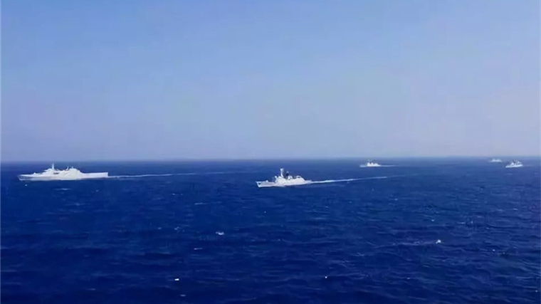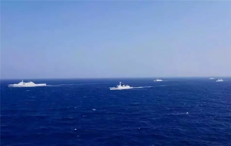 △當(dāng)?shù)貢r(shí)間12月24日上午,中國(guó)海軍第30批護(hù)航編隊(duì)與第31批護(hù)航編隊(duì)在亞丁灣東部海域會(huì)合,并組成雙縱隊(duì)航行。來永雷 攝