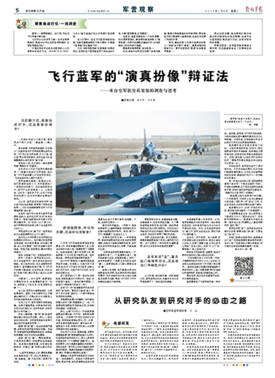 中國空軍的專業(yè)航空兵藍(lán)軍進(jìn)入人們視野的時間并不長。2015年“火力-2015·山丹A”演習(xí)是他們在公開報道中首次亮相。在人們眼中,這支飛行藍(lán)軍神秘而低調(diào),與威名赫赫馳騁朱日和大漠的“中國第一藍(lán)軍旅”相比截然不同。不過,與陸軍藍(lán)軍旅“紅藍(lán)兼?zhèn)洹钡睦砟钕嗨疲哲姷倪@個藍(lán)軍旅也有個響當(dāng)當(dāng)?shù)目谔枺凶觥八{(lán)軍最像,紅軍最強(qiáng)”。這背后,是藍(lán)軍建設(shè)的一個共同課題:作為假想敵部隊,最首要的就是把敵人“演真扮像”,為和平時期練兵提供對手,對未來戰(zhàn)場上的對抗進(jìn)行推演。請關(guān)注今日《解放軍報》的報道——