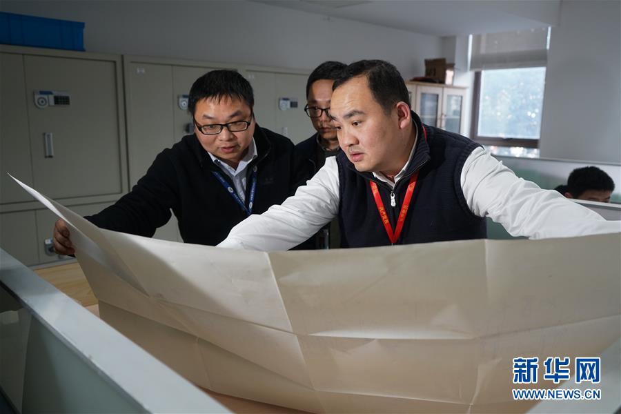 在中船重工第七〇二研究所,葉聰(右)和同事研究討論(2018年12月24日攝)。 新華社記者 季春鵬 攝