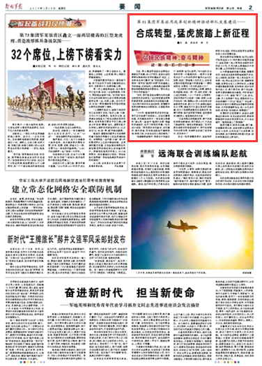 在這一輪的調(diào)整改革中,該旅再次轉(zhuǎn)型為合成旅,并擔(dān)負(fù)起陸軍合成營(yíng)進(jìn)攻戰(zhàn)斗試點(diǎn)觀摩任務(wù)。