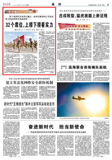 第73集團(tuán)軍某旅營(yíng)區(qū)設(shè)立這個(gè)大型龍虎榜,通過32個(gè)上榜席位,把一個(gè)個(gè)練兵備戰(zhàn)的典型樹起來,把戰(zhàn)斗隊(duì)的思想立起來。請(qǐng)關(guān)注今天出版的《解放軍報(bào)》的報(bào)道——
