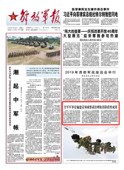 2018年12月上旬,軍委后勤保障部軍事設(shè)施建設(shè)局會(huì)同戰(zhàn)略規(guī)劃辦資源調(diào)控局、審計(jì)署基本建設(shè)審計(jì)局,組成3個(gè)督導(dǎo)檢查組,開(kāi)展軍事設(shè)施建設(shè)領(lǐng)域年度計(jì)劃執(zhí)行和行業(yè)領(lǐng)域整肅治理情況督導(dǎo)檢查。請(qǐng)關(guān)注今日《解放軍報(bào)》的報(bào)道——