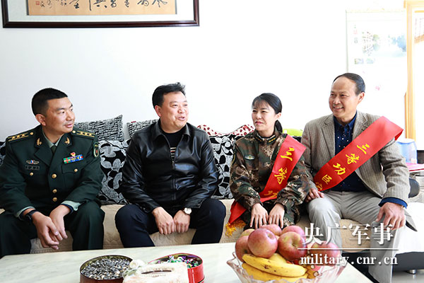 讓最可愛的人成為最光榮的人,讓最辛苦的人成為最幸福的人。在地方電視臺(tái)等媒體的見證下,軍地領(lǐng)導(dǎo)為李珊珊和家人戴上喜慶的綬帶,全家人臉上洋溢著燦爛的笑容。“您愛人在部隊(duì)榮立了三等功,特地來給您們報(bào)喜,感謝您們的支持!”市武裝部政委劉松泉將立功喜報(bào)送到功臣愛人李君手中,一家人捧著喜報(bào),樂得合不攏嘴。