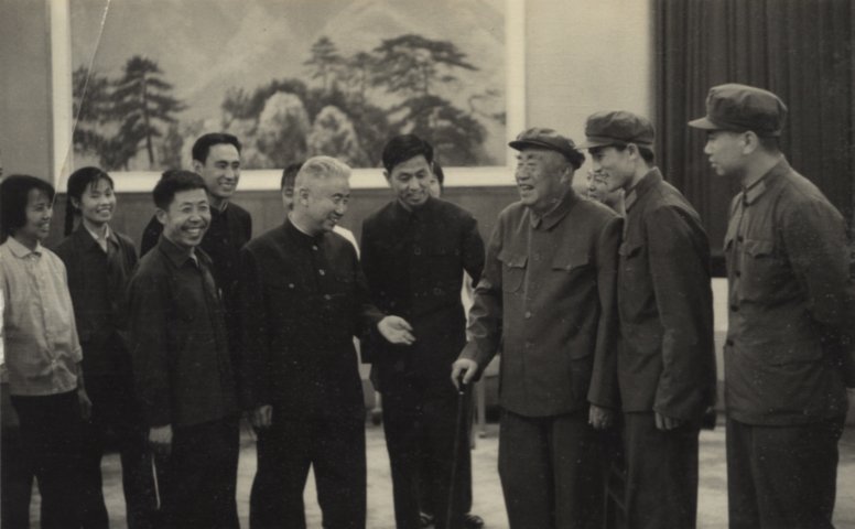 1975年,朱德委員長在北京人民大會堂接見全國人大工作人員。右二為本文作者李廷良同志。