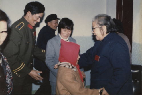 1986年,朱德委員長夫人康克清大姐接見本文作者李廷良同志及其妻子、女兒。