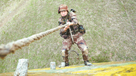 楊文超拽緊繩索奮力攀登阻絕墻,一寸一寸向上挪動(上圖)。人生如同攀登,不因旅途艱難而畏懼,不因旅途疲憊而放棄。當(dāng)?shù)琼數(shù)哪且豢蹋銜挥[別樣的風(fēng)景。李源耕 攝