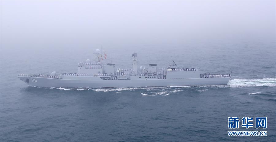 4月23日,慶祝中國(guó)人民解放軍海軍成立70周年海上閱兵活動(dòng)在青島附近海空域舉行。這是“石家莊”號(hào)導(dǎo)彈驅(qū)逐艦。 新華社記者 琚振華 攝