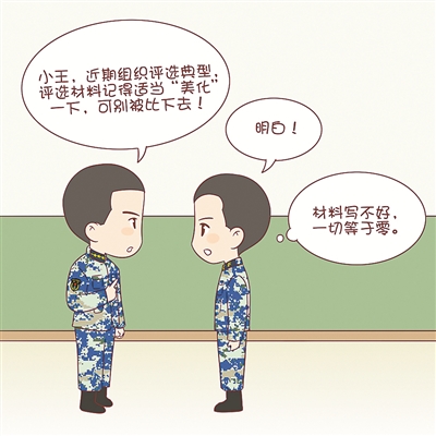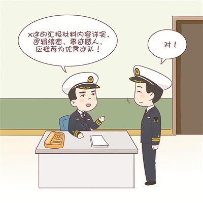 當(dāng)前,一些上級單位考評下級以“看材料”為主。上級“以材料論英雄”,下級索性投其所好。于是,各種穿靴戴帽、追求形式的包裝文章應(yīng)運(yùn)而生。更有甚者,以推出完美的材料為目標(biāo),使出渾身解數(shù)編亮點(diǎn)、造事跡。在不少官兵眼里,寫好材料就等于干好了工作,材料過硬就是事跡過硬。
