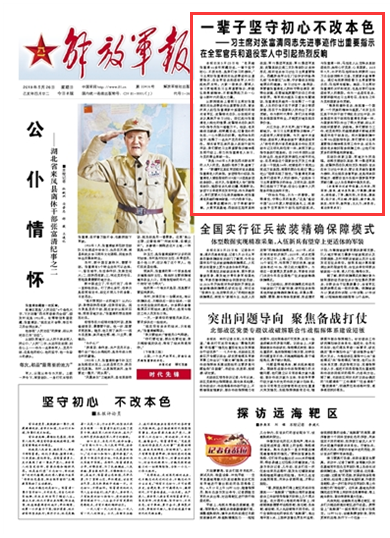 習主席對張富清同志先進事跡作出重要指示,在全軍官兵和退役軍人中引起熱烈反響。大家一致表示,要深入學習貫徹落實習主席重要指示,積極弘揚奉獻精神,不斷凝聚起萬眾一心奮斗新時代的強大力量。請關注今日《解放軍報》的報道——