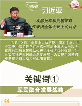 習(xí)近平在出席解放軍代表團(tuán)全體會議時強(qiáng)調(diào),加快建立軍民融合創(chuàng)新體系,為我軍建設(shè)提供強(qiáng)大科技支撐。